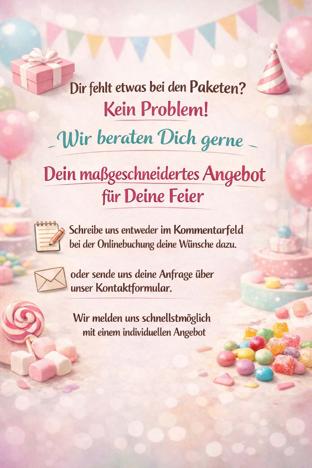 Du hast kein passendes Paket gefunden? Melde dich gerne bei uns und wir gestalten dir ein individuelles Angebot.